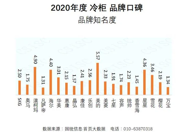 品牌知名度方面:其中,美的、澳柯玛、海尔等3个品牌在品牌知名度中位居前三。美的、澳柯玛、海尔、星星、雪花、乐创、美菱在近两期中表现稳定,品牌知名度位居前十。华美、SKG、康佳在本期品牌知名度中有强劲表现,晋升至前十,新飞、白雪、容声则在本期品牌知名度中滑出榜单前十位次。